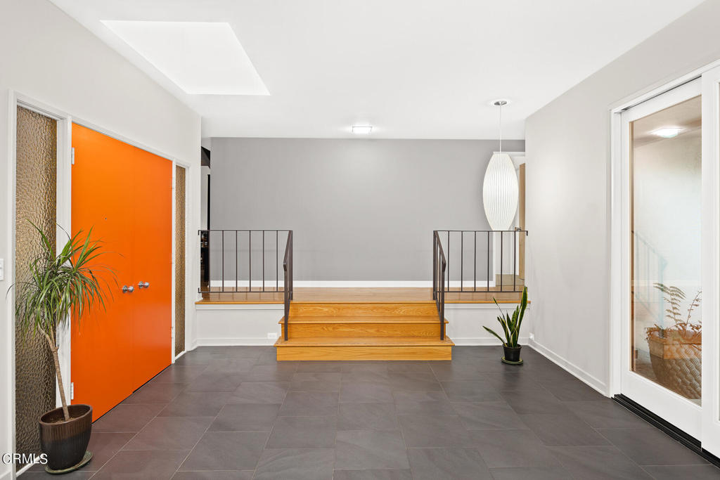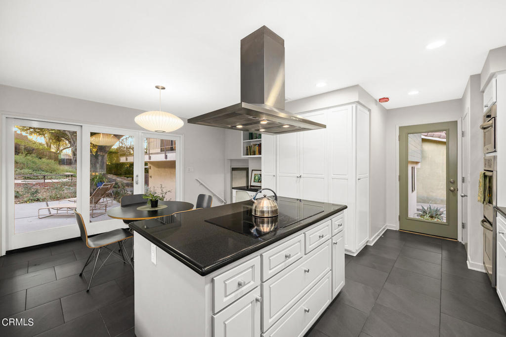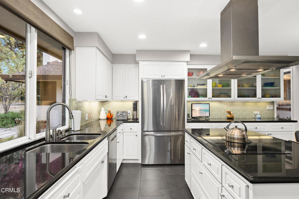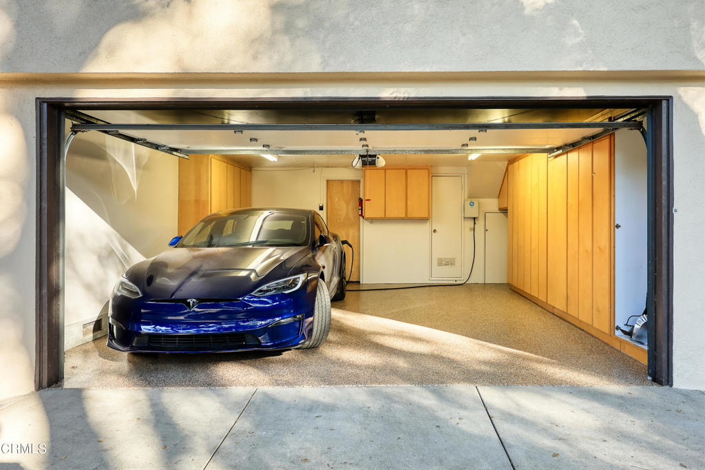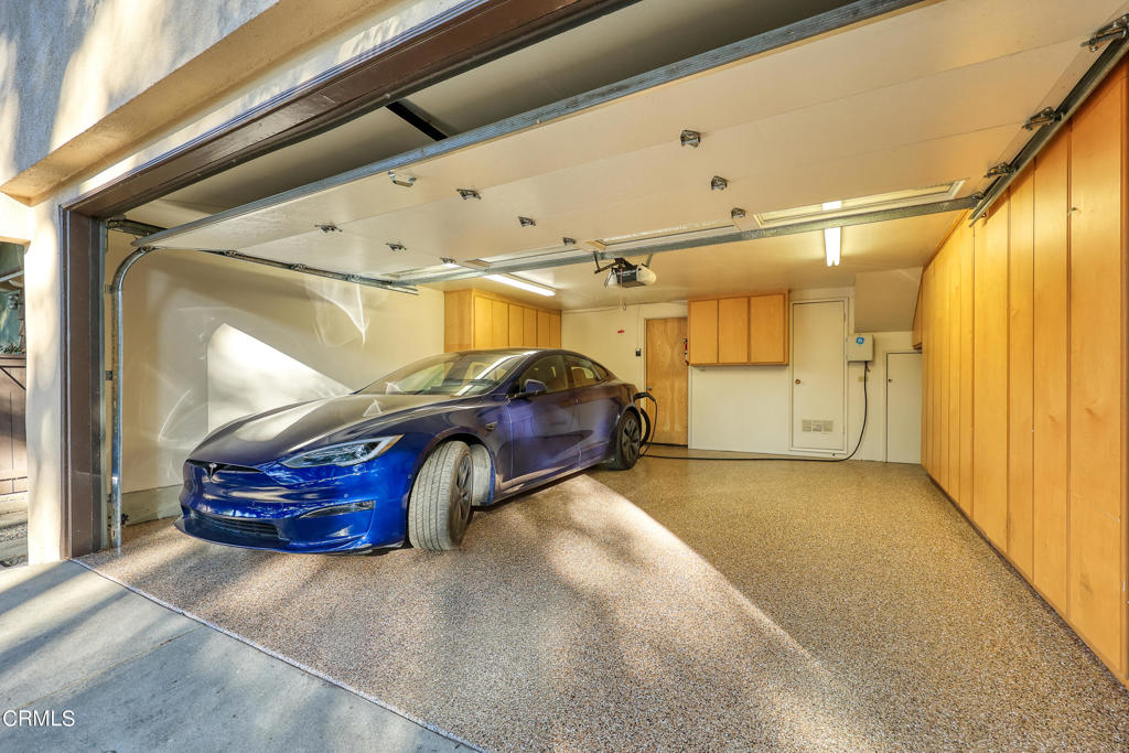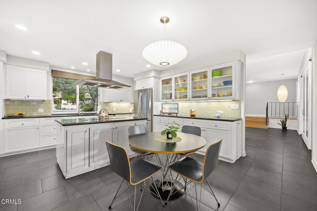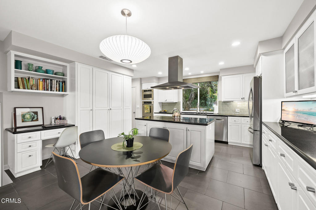 Nestled on a secluded private drive, this mid-century inspired home welcomes you to a blend of eco-conscious living and a peaceful and serene setting. Embrace a sustainable lifestyle as you make this fully electric home your own. Boasting an impressive 11.2-kilowatt solar panel system, an electric heat pump water heater, and a high-efficiency Trane heating and cooling system, this home not only reduces your carbon footprint but also offers significant financial savings. As you step inside, a spacious entry and dining combination welcome you with tile floors, a skylight that provides natural light, designer light fixtures, and sliding French doors with sweeping views of the backyard. The living room is a masterpiece of tranquility and features a cathedral ceiling with exposed wood beams, creating a sense of spaciousness. A floor-to-ceiling brick-faced fireplace faces abundant windows and a skylight, which shower the room with a soft, delicate glow. The primary bedroom suite boasts views of the backyard, patio, and lush greenery, inviting the beauty of the outdoors in. Recessed lighting, oversized closets with mirrored doors, and built-in shelves provide ample storage and convenience. The spacious bathroom features double sinks and abundant cabinetry for your daily needs. The junior bedroom suite is both spacious and stylish with an oversized closet and an adjoining full bath; it's the perfect retreat for family or guests. The heart of this home, the kitchen, offers a modern culinary experience featuring granite counters, an island with an induction cooktop, double ovens, a breakfast area, glass-faced cabinets, porcelain floor tiles, and ample storage that make it a chef's dream. The possibilities are endless with a multi-purpose room that includes a granite counter and sink, wine fridge, and direct access to the garage. Whether you need a home office, gym, or recreational room, this space adapts to your lifestyle. Additional features include a spacious den, two additional bedrooms with shared hall bath, an attached two-car garage with newly resurfaced epoxy floors and an EV charger, solid oak wood floors, and connection to the public sewer system (bond paid). The park-like setting offers an oasis of greenery, featuring a looping path shaded by multiple oak trees, a fire pit deck, and a courtyard accessible from most living spaces. It's a serene escape from the outside world, yet located minutes away from the YMCA, Town Center, and local freeways.