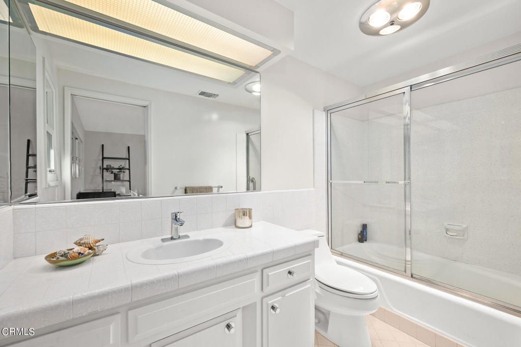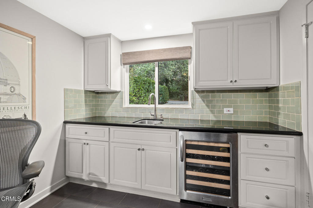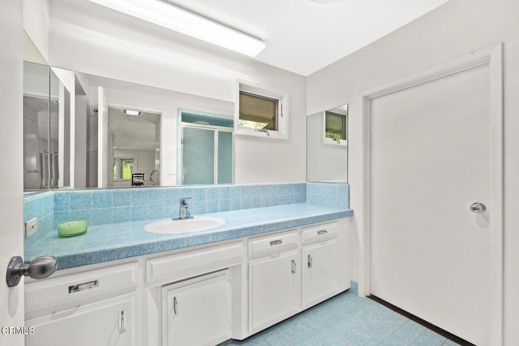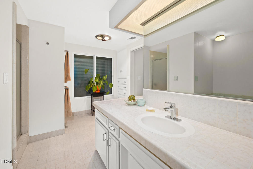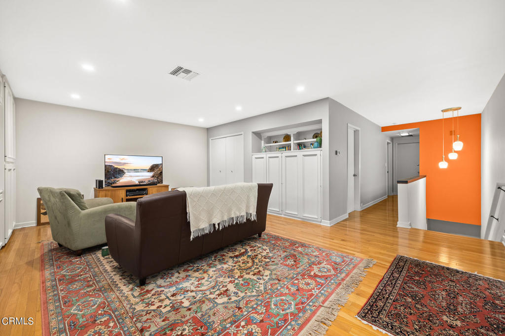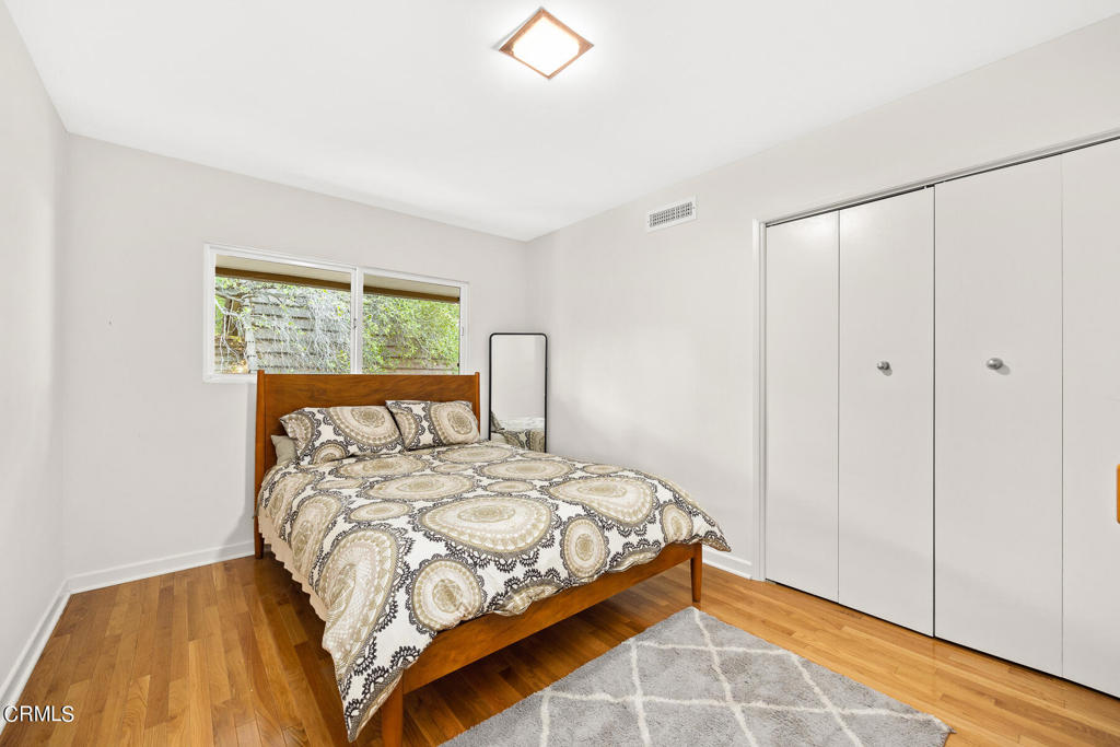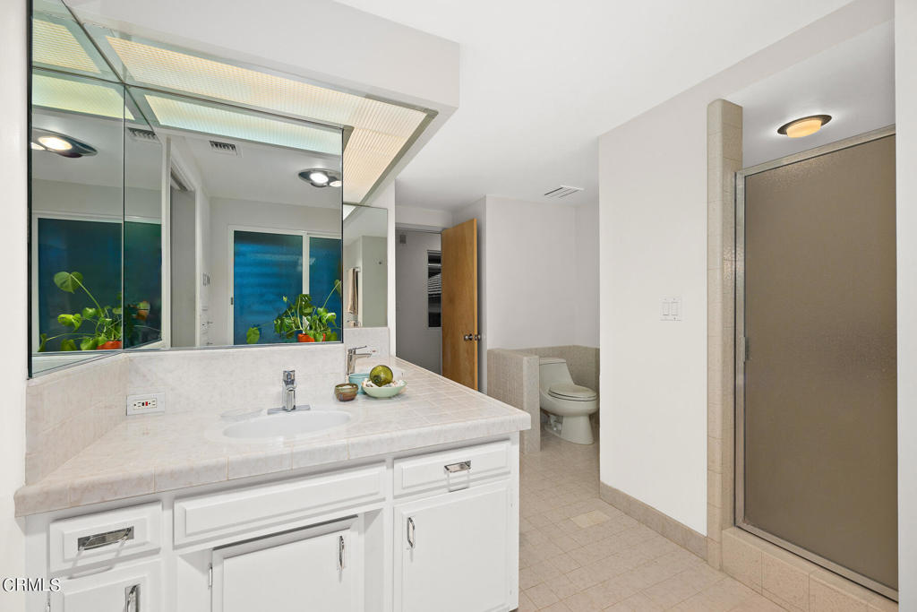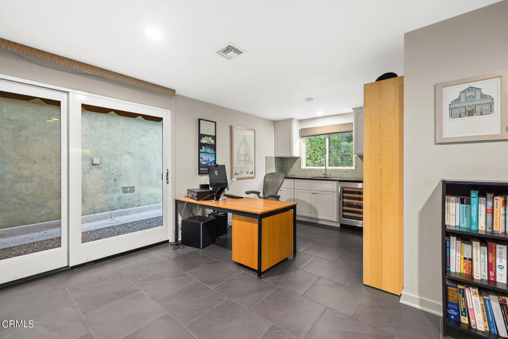 Nestled on a secluded private drive, this mid-century inspired home welcomes you to a blend of eco-conscious living and a peaceful and serene setting. Embrace a sustainable lifestyle as you make this fully electric home your own. Boasting an impressive 11.2-kilowatt solar panel system, an electric heat pump water heater, and a high-efficiency Trane heating and cooling system, this home not only reduces your carbon footprint but also offers significant financial savings. As you step inside, a spacious entry and dining combination welcome you with tile floors, a skylight that provides natural light, designer light fixtures, and sliding French doors with sweeping views of the backyard. The living room is a masterpiece of tranquility and features a cathedral ceiling with exposed wood beams, creating a sense of spaciousness. A floor-to-ceiling brick-faced fireplace faces abundant windows and a skylight, which shower the room with a soft, delicate glow. The primary bedroom suite boasts views of the backyard, patio, and lush greenery, inviting the beauty of the outdoors in. Recessed lighting, oversized closets with mirrored doors, and built-in shelves provide ample storage and convenience. The spacious bathroom features double sinks and abundant cabinetry for your daily needs. The junior bedroom suite is both spacious and stylish with an oversized closet and an adjoining full bath; it's the perfect retreat for family or guests. The heart of this home, the kitchen, offers a modern culinary experience featuring granite counters, an island with an induction cooktop, double ovens, a breakfast area, glass-faced cabinets, porcelain floor tiles, and ample storage that make it a chef's dream. The possibilities are endless with a multi-purpose room that includes a granite counter and sink, wine fridge, and direct access to the garage. Whether you need a home office, gym, or recreational room, this space adapts to your lifestyle. Additional features include a spacious den, two additional bedrooms with shared hall bath, an attached two-car garage with newly resurfaced epoxy floors and an EV charger, solid oak wood floors, and connection to the public sewer system (bond paid). The park-like setting offers an oasis of greenery, featuring a looping path shaded by multiple oak trees, a fire pit deck, and a courtyard accessible from most living spaces. It's a serene escape from the outside world, yet located minutes away from the YMCA, Town Center, and local freeways.