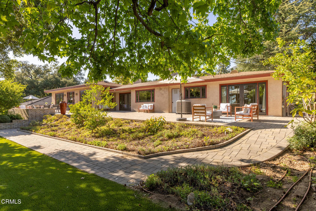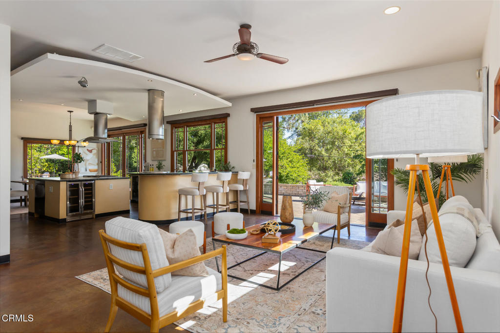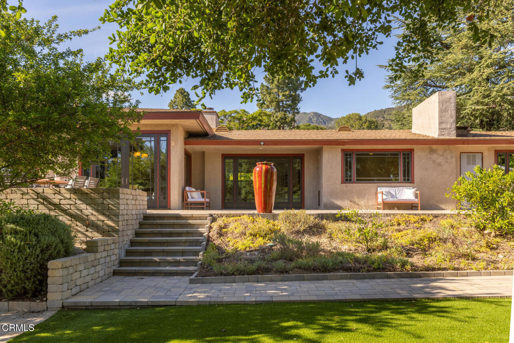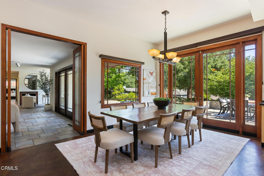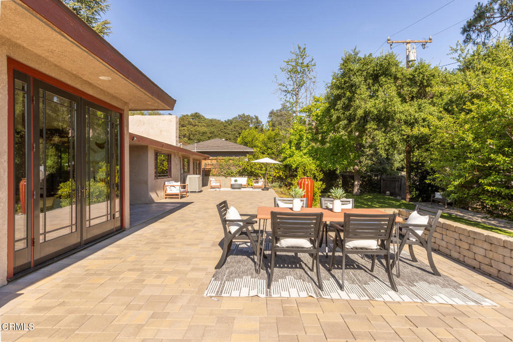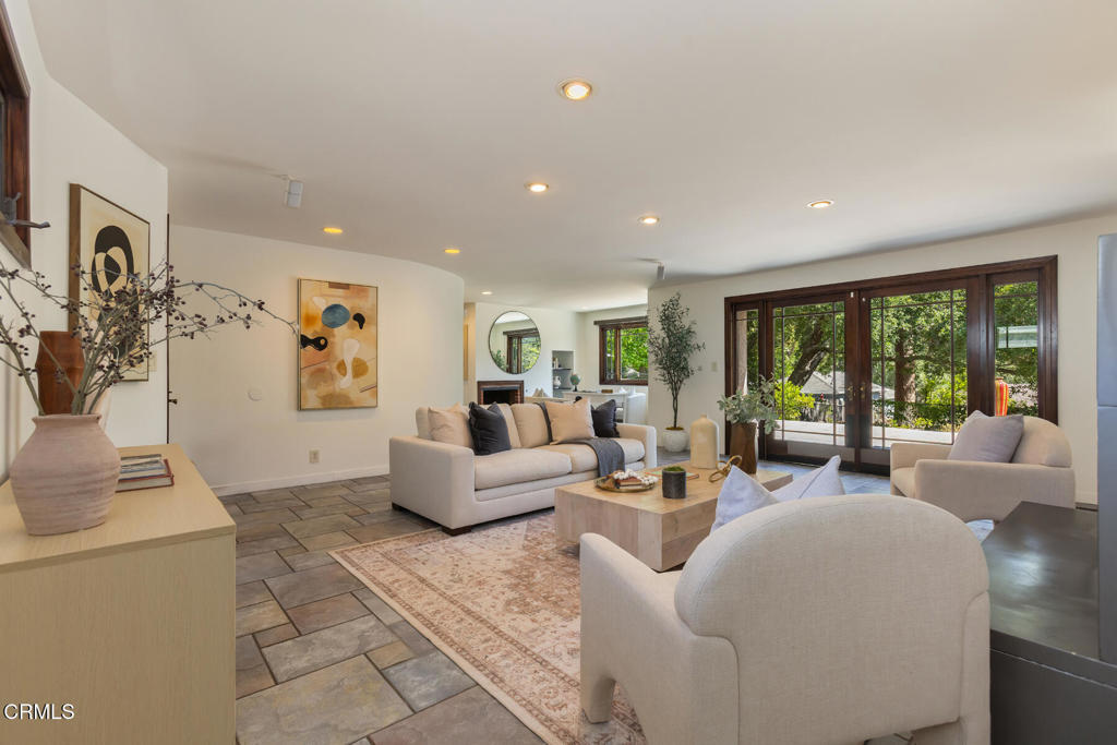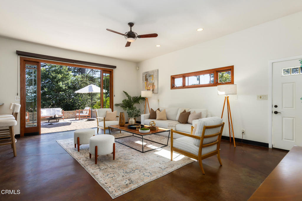 Filled with natural light and mid-century character, this sprawling Ranch style home offers a warm interior designed for comfortable living. Concrete floors and prairie-style windows create a subtle modern flair while honoring the home's architectural roots. Inside, the living room welcomes you with a fireplace, cozy reading nook with an additional fireplace, and French doors that open to the backyard. At the center of the home, the open dining, kitchen, and family room combination creates an inviting space for everyday living and gathering. Abundant cabinetry and storage define the kitchen, complemented by an island with cooktop and wine fridge. Oversized French doors and expansive windows brighten the space while providing seamless access to the backyard. The primary bedroom is centrally located and offers convenient access to the living room, kitchen, and garage. A separate bedroom wing provides three additional spacious bedrooms and a shared bath. The expansive backyard is flat and versatile, offering multiple entertaining areas and ample space to add a swimming pool, ADU, or sports court. Additional highlights include incorporation into the award winning La Canada School District beginning in the 2026-2027 school year, a wide lot with 118' frontage, newly installed pavers on semi-circular driveway & backyard areas, and an oversized 2-car garage with direct access into the home. Situated on a charming cul-de-sac and conveniently near Foothill Blvd., this inviting property presents a wonderful opportunity for its next owner.
