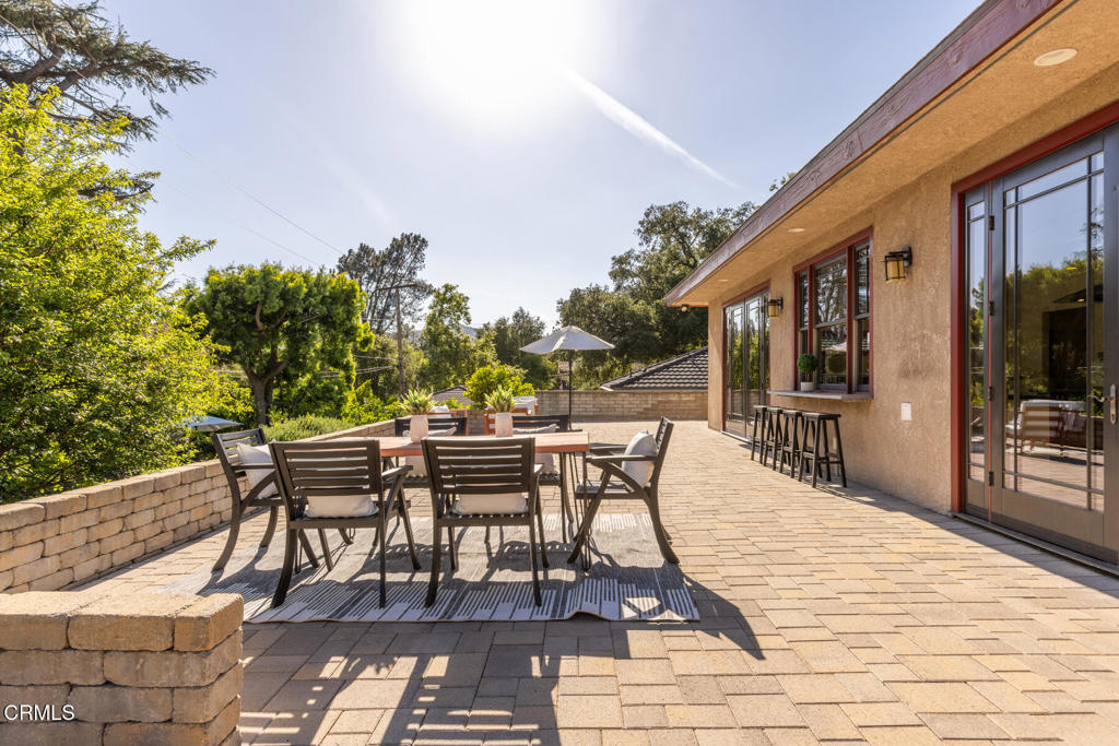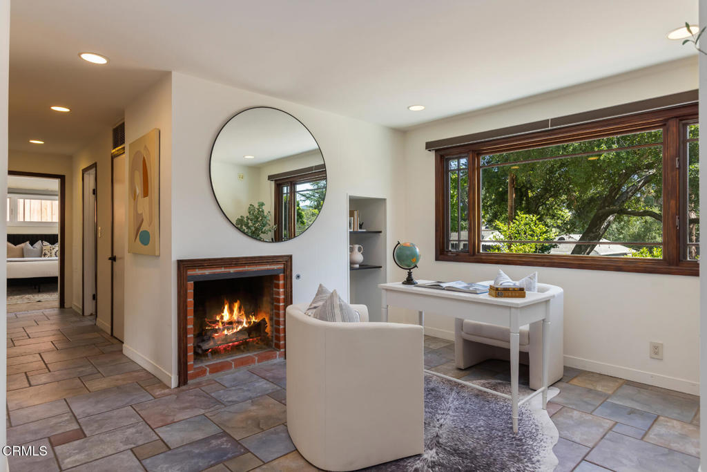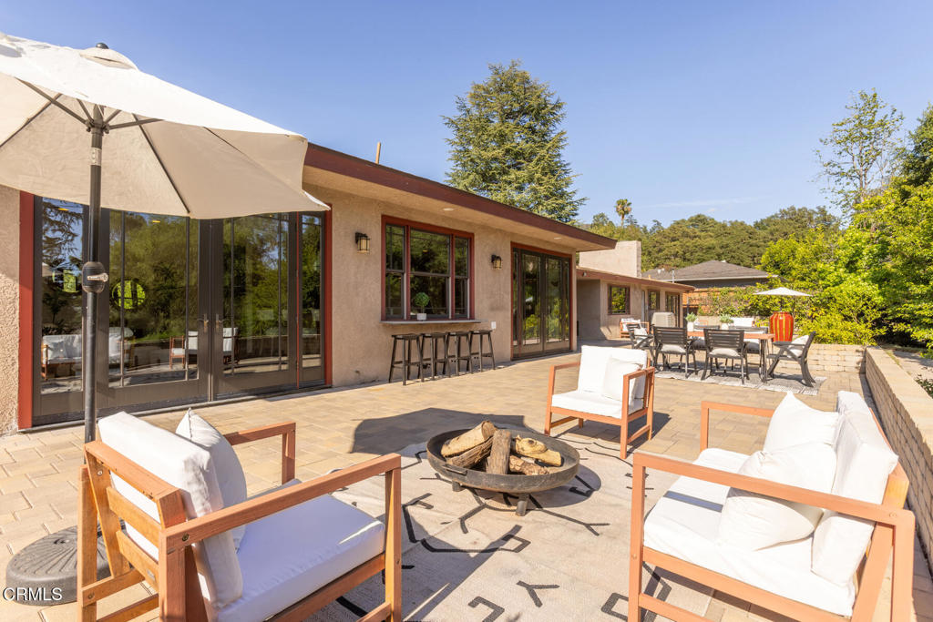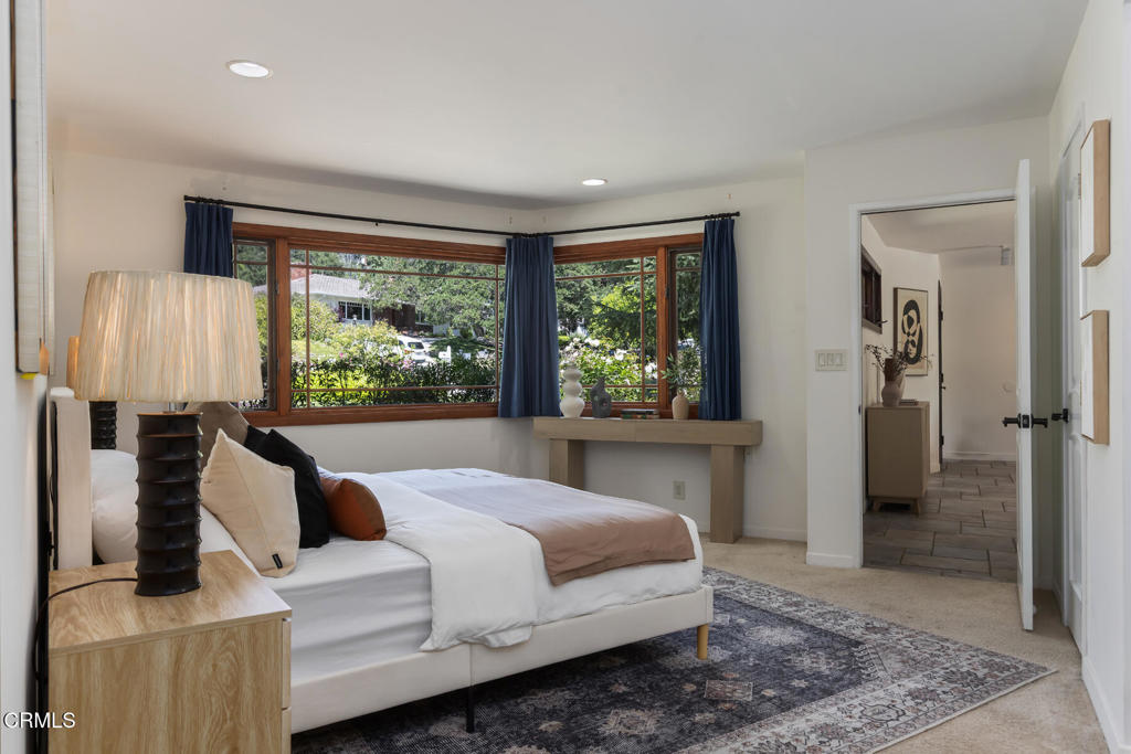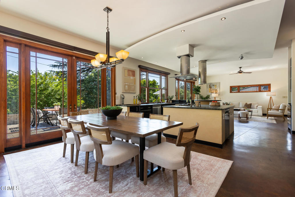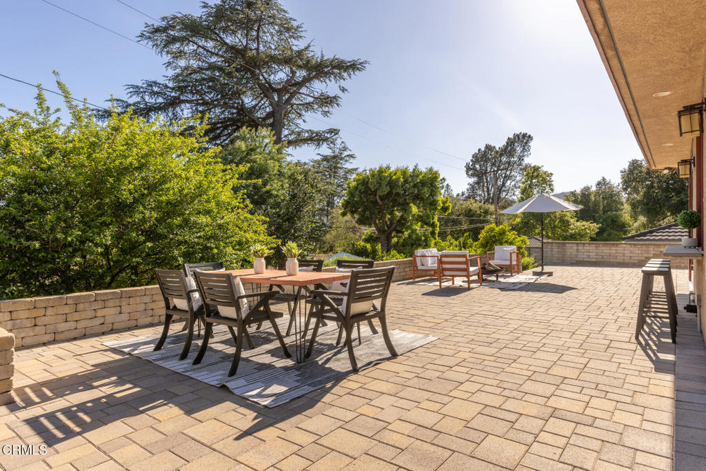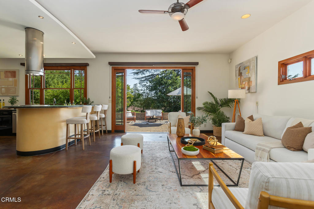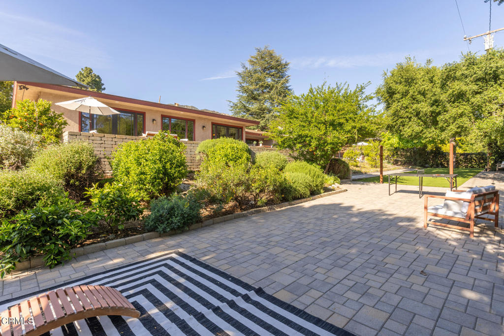 Filled with natural light and mid-century character, this sprawling Ranch style home offers a warm interior designed for comfortable living. Concrete floors and prairie-style windows create a subtle modern flair while honoring the home's architectural roots. Inside, the living room welcomes you with a fireplace, cozy reading nook with an additional fireplace, and French doors that open to the backyard. At the center of the home, the open dining, kitchen, and family room combination creates an inviting space for everyday living and gathering. Abundant cabinetry and storage define the kitchen, complemented by an island with cooktop and wine fridge. Oversized French doors and expansive windows brighten the space while providing seamless access to the backyard. The primary bedroom is centrally located and offers convenient access to the living room, kitchen, and garage. A separate bedroom wing provides three additional spacious bedrooms and a shared bath. The expansive backyard is flat and versatile, offering multiple entertaining areas and ample space to add a swimming pool, ADU, or sports court. Additional highlights include incorporation into the award winning La Canada School District beginning in the 2026-2027 school year, a wide lot with 118' frontage, newly installed pavers on semi-circular driveway & backyard areas, and an oversized 2-car garage with direct access into the home. Situated on a charming cul-de-sac and conveniently near Foothill Blvd., this inviting property presents a wonderful opportunity for its next owner.