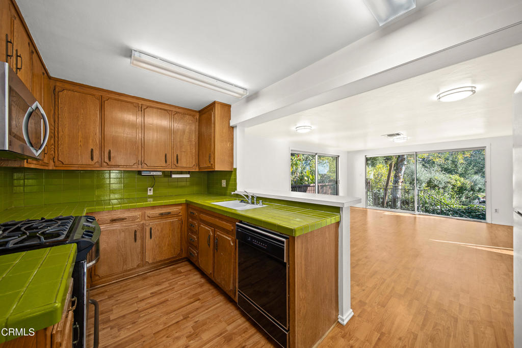 Lovingly cared for by the same family for nearly 50 years, this traditional home is located just blocks from La Canada Elementary and offers tremendous opportunities for expansion and renovation. A formal entry welcomes you to the spacious living room with original oak hardwood floors, a wood-burning fireplace, a sliding glass door to the balcony patio and direct access to the dining area. The kitchen features a breakfast counter that seamlessly opens to the oversized dining room with stunning views of the San Gabriel mountains and provides easy access to the backyard. The spacious downstairs Family Room features a wood-burning fireplace, additional storage, and direct access to the back yard. On the main level, there are two generous sized bedrooms (including one suite) with hardwood floors & multiple closets and two bathrooms. The third bedroom, which is located downstairs and is connected to a three-quarter bath, features a large closet, and access to back yard. Other highlights of this home include: new interior paint, Central A/C & heat, laundry in basement with additional storage, ample parking in the driveway and 2-car carport, rear & side yard play space, a patio area for wheel toys on a flat lot that offers room for logical home expansion. The downstairs section of the home has fantastic potential to serve as an ADU. Conveniently close to center of town, Memorial Park and La Canada Elementary School in the award-winning La Canada Unified School District, this charming 1950's traditional home awaits new owners with grand ideas!