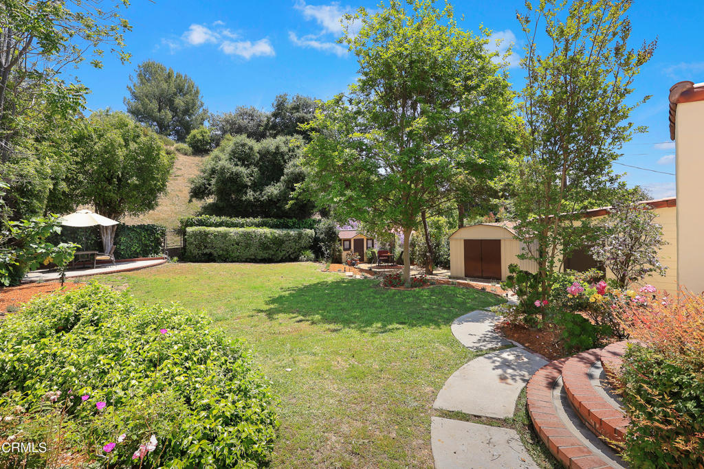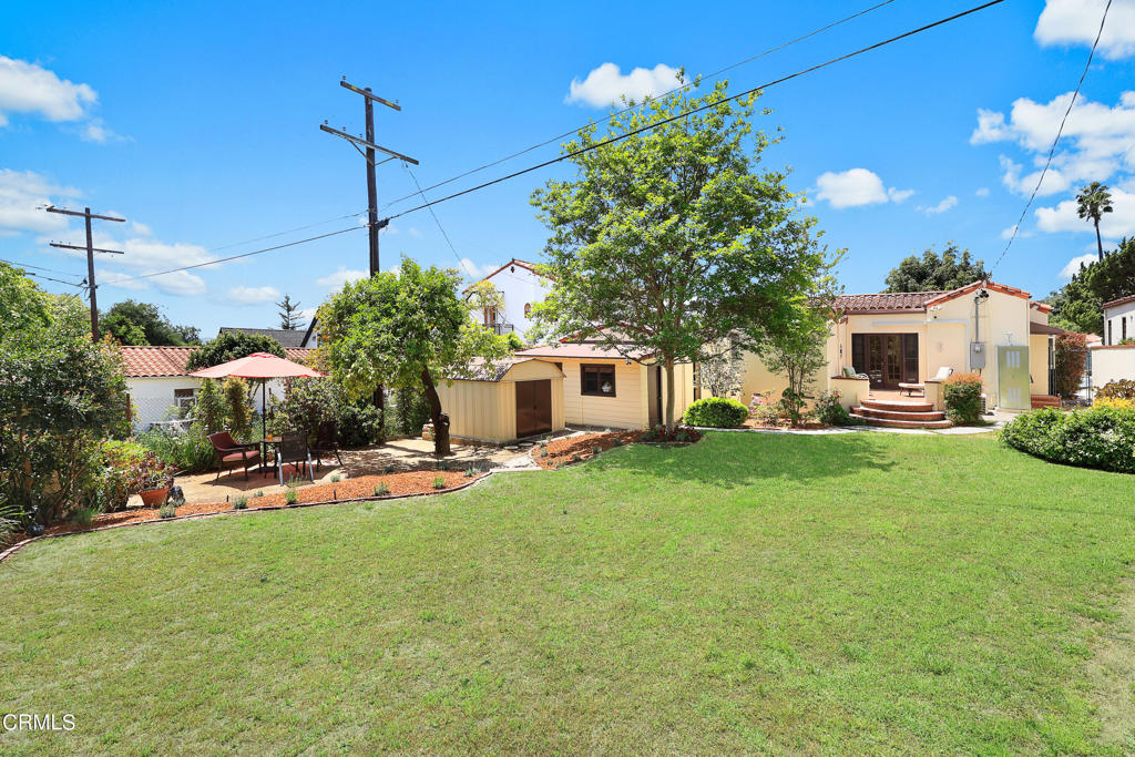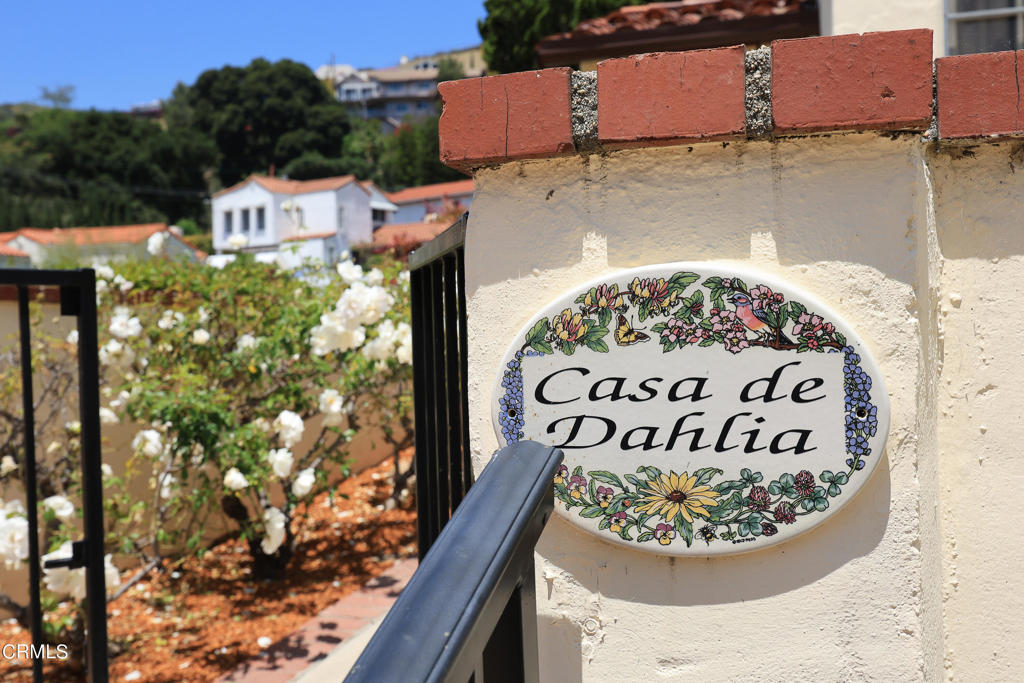 Welcome to Casa de Dahlia, a beautifully preserved 1920's Spanish home where timeless architectural charm is thoughtfully enhanced in one of Eagle Rock's most sought-after neighborhoods. Perfectly situated on the picturesque and highly coveted Dahlia Drive, just above Hill Drive, this enchanting 3-bedroom, 2.5-bath casita sits on a 15,000+ SF lot in an unbeatable location. The home invites you in with a storybook entry featuring a speakeasy door, stained-glass accents, and a coat closet. Inside, the living room is rich with character, showcasing coved ceilings, a classic fireplace, original hardwood floors, and a charming built-in bench with hidden storage. The light-filled dining room flows seamlessly from the living area, creating an ideal space for both everyday living and entertaining. Just beyond, the bright kitchen blends style and functionality with exposed beams, a cozy breakfast nook, quartz countertops, a Kohler farmhouse sink, and a full suite of KitchenAid stainless steel appliances, including double ovens, dishwasher, and refrigerator. The thoughtful bedroom wing offers privacy and comfort. The primary suite is a true retreat, featuring a walk-in closet, a beautifully appointed en-suite bath with an oversized shower, and French doors that open directly to the serene backyard patio, perfect for morning coffee or evening relaxation. Two additional bedrooms offer hardwood floors, ceiling fans, wall A/C units, and generous closet space and share an updated full bath. Outside, the backyard provides a private escape with mature fruit trees, blooming roses, and a lush grassy yard ideal for entertaining, play, or quiet moments under the shaded patio. The generous lot also offers potential for expansion, the addition of an ADU, or swimming pool. Additional highlights include a convenient powder room, a laundry closet, a wide driveway with ample parking, and a two-car garage complete with a rear workshop. Just minutes from Eagle Rock's favorite shops and dining, with easy access to the 210, 134, and 2 freeways, Casa de Dahlia offers the perfect blend of neighborhood charm, modern convenience, and vibrant community living.
